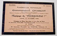 Une cérémonie funèbre se déroulera d’abord à Reykjavik. Mais c’est à Saint Malo (port d’attache du Pourquoi pas ? ) après l’arrivée des 23 cercueils , que s’exprima une véritable ferveur populaire pour cet homme juste, infatigable serviteur de la science.