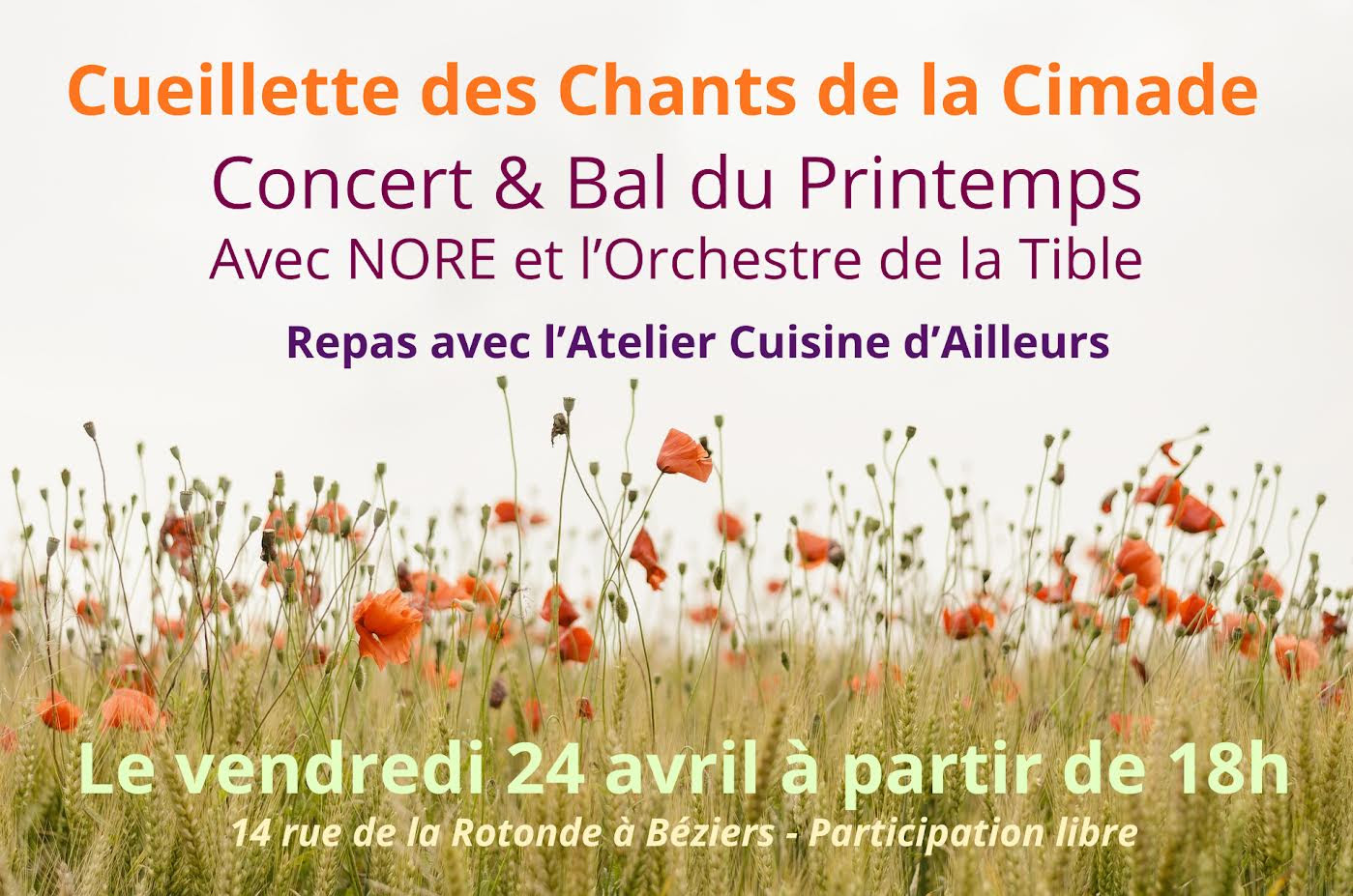 Bonjour tout le monde Le printemps arrive et nous met en fleurs ! Le 24 avril à partir de 18h, vous êtes invité.es. à la restitution de la Cueillette des Chants de la Cimade Béziers, mené par Laurent Cavalié. L’idée, c’est de cueillir la mémoire chantée de toutes...