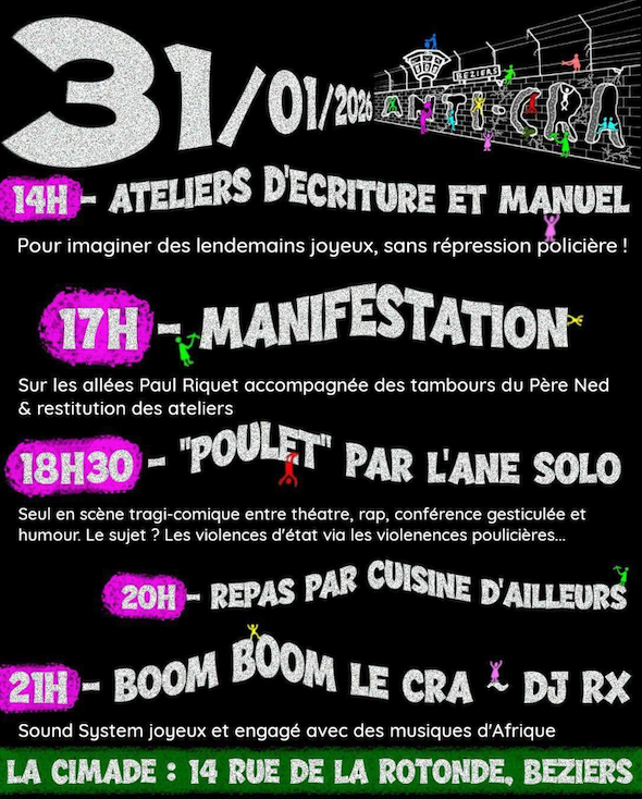Brèvinfo du 26 janvier – Cette semaine dans l’Hérault : manif anti militariste, mobilisations contre les violences policières et les CRA, pour le peuple kurde