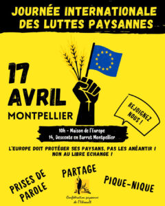 Confédération Paysanne de l’Hérault : mobilisation le 17 Avril à Montpellier