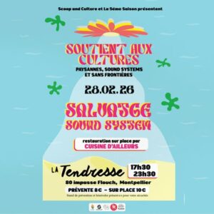 Nous avons le plaisir de vous convier samedi 28 février à la tendresse entouré d’attentions, c’est Soutien aux cultures : paysannes sound system et sans frontière :