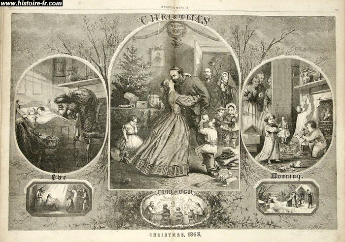 En 1863, Santa Claus troqua ses habits d’évêque contre un costume rouge avec fourrure blanche, rehaussé d’une large ceinture de cuir. Il fut représenté ainsi par Thomas Nast, illustrateur et caricaturiste dans un journal new-yorkais.